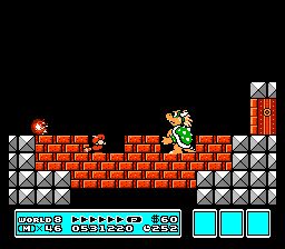 Bowser- I love this Final boss because Bowser pretty much kills himself which is hilarious instead of jumping on Bowser’s head you fight him on top of a load of bricks and Bowser tries to squish Mario with giant turtle ass all Mario’s got to do is avoid Bowser and eventually he will fall through the bricks the final battle isn’t as easy as it sounds though just like the Koopa kids Bowser provides a lot of challenge but he’s not too difficult.