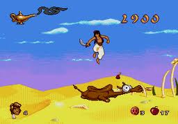A lot of classic licenced games are just a way for developers to make money so the arrangement of levels didnt really matter as long as developers made money and the kids are quiet right?  Wrong this ruined video game experiences for me as a kid because if I was playing a game based on one of my favourite movies I wanted the levels to be in the same order as in the movie so that I got a fun experience which made sense. Aladdin kind of did this and by that I mean yeah the levels are in the correct order for the most part but some levels in the game didn’t make sense as they didn’t follow the movie at all, for example their is a stage in the desert where aladdin needs to find the scarab to open the cave of wonders but according to the film Jafar already had the scarab. This does annoy me but to be honest it doesn’t annoy me that much because there isnt many stages like this in the game and like I said for the most part the level order is spot on.