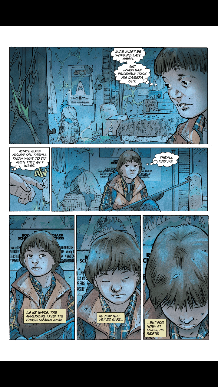 I love the lay out and writing style of this comic series, there is less dialogue than would be expected but clever pacing and story telling really makes this one stand out as the journey of Will Byers is told to the reader with more emphasis on the journey compared to other elements of the story.