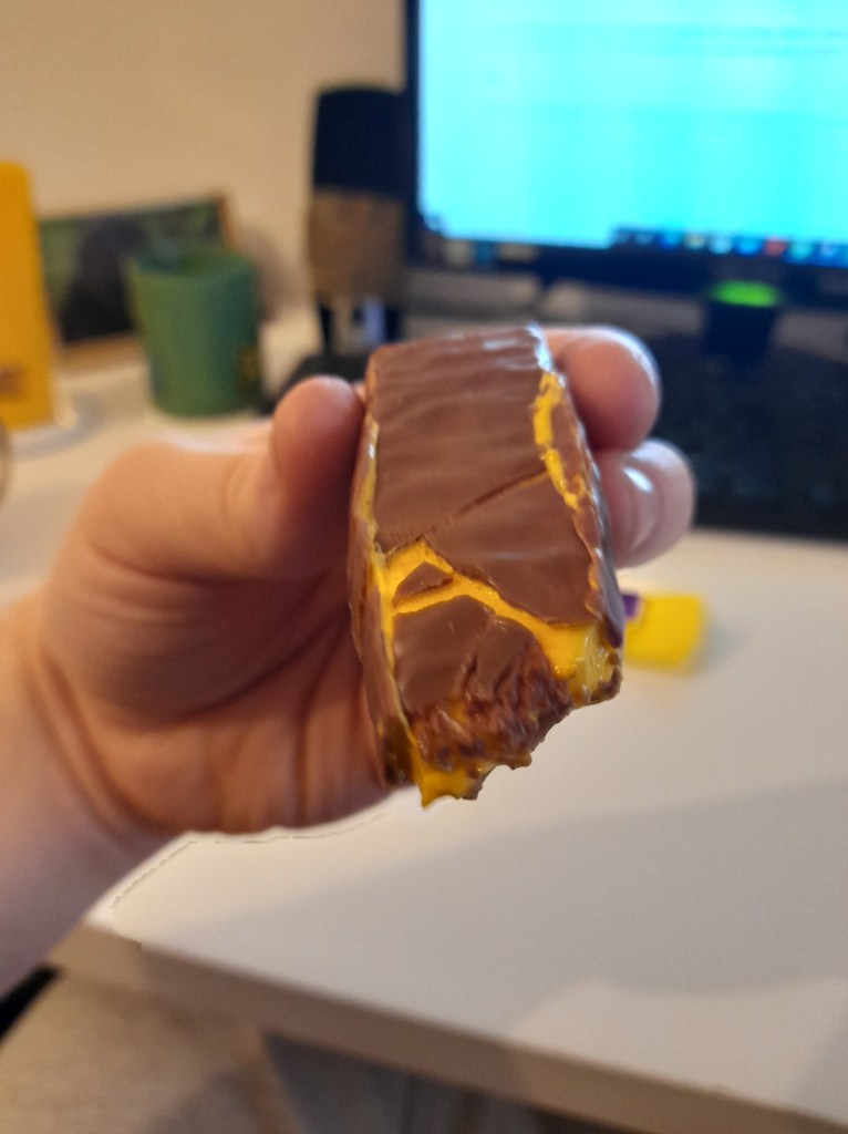 I dont think my description of the taste will do this justice but the mix of chocolate and banana marshmallow is amazing, its very sweet, I only took a small bite and I feel satisfied like I want some more but I want to take my time with it instead of shovelling it down.