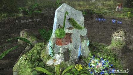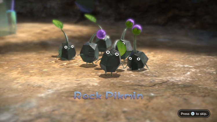 The Series staples Red, Yellow and Blue Pikmin return and to replace the Purple and White Pikmins from the second game, here there are two new types, Rock Pikmin which can be used to deal major damage to enemies and bosses as well as smashing crystals and Winged Pikmin which are able to fly and sprout these pink plants which often hide treasures and fruits.