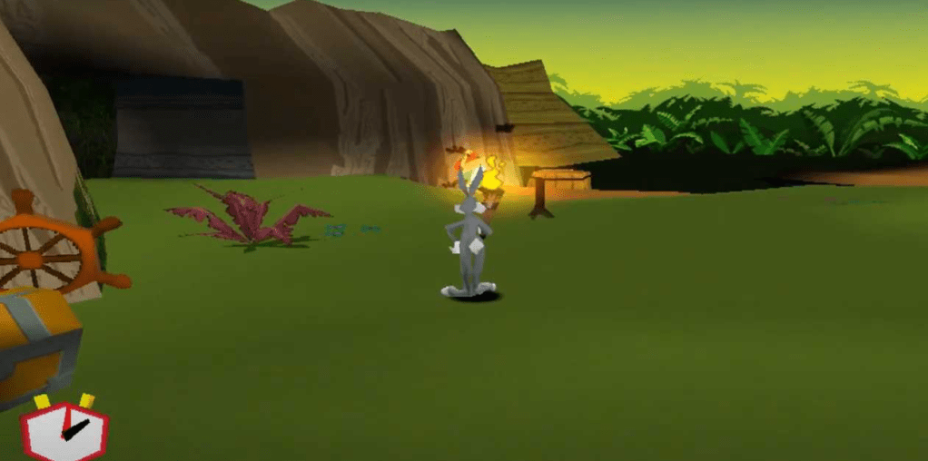 In the game Bugs Bunny accidently activates a time machine when he mistakes it for a carrot juice dispenser. Due to this he is sent to an area named nowhere, this is the homeland of Merlin the wizard, Merlin tells Bugs that he has been lost in time and will need to explore five different Time periods (Stone Age, Pirate Years, 1930’s, Medieval Period and Dimension X) looking for golden carrots and clock symbols in order to power the time machine and allow him to return to the present day.