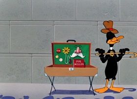 1948’s Daffy Dilly is a Chuck Jones cartoon that sees Daffy Duck as a gag joke salesman failing to make even a dollar on the streets, he over hears a Television broadcast that a dying millionaire will leave his fortune to the person who gives him his last laugh, Daffy seeing a way out of his financial failures heads over to his mansion and has to out wit the butler to see his master and make a quick million.