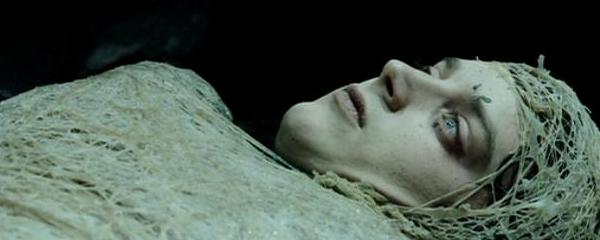 There is a part of the film after Frodo leaves Sam he gets tricked into entering the cave of the Spider Shelob where he gets injected with a numbing liquid and wrapped in web, this part used to scare me and is really disturbing, when Sam removes the web from Frodo’s face he looks pale and dead and it isn’t revealed until later on that he is still alive.