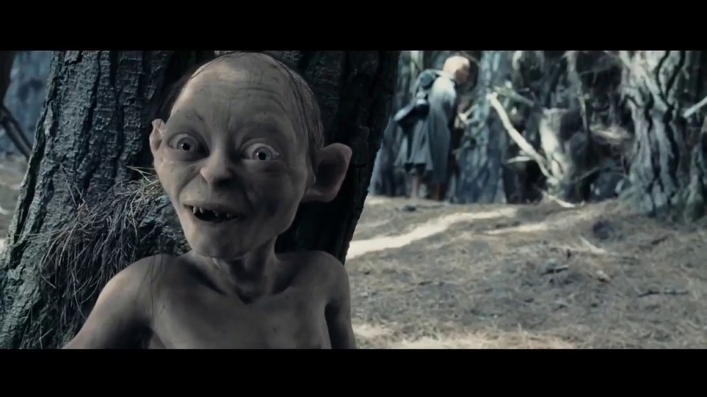 It was the first interaction that the hobbits had with the creature Gollum here played by Andy Serkis who voiced the character and did live action work before the animation. Gollum is easily the best part of the film, he is very funny especially when he starts arguing with his other personality Sméagol.