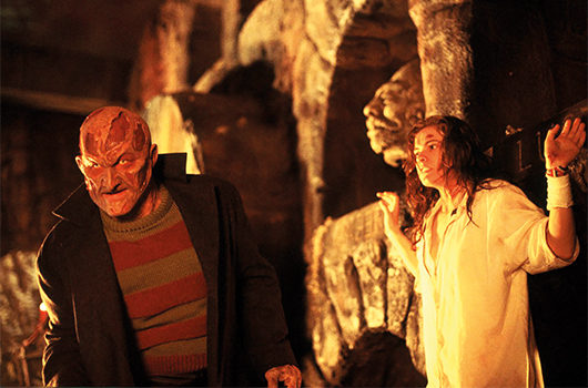 The sets are very good in this but special props definitely go to the finale, Heather is sent into a fiery hell from the mouth of a giant Freddy rock scape, here this whole segment is fantastic with its call backs to Freddy being sent to hell after dying in part 6 and of course Hansel and Gretel a story read to Dylan earlier on in the film. We finally get to see some of Freddy’s powers here too with his stretchy arm and his snake like tongue.