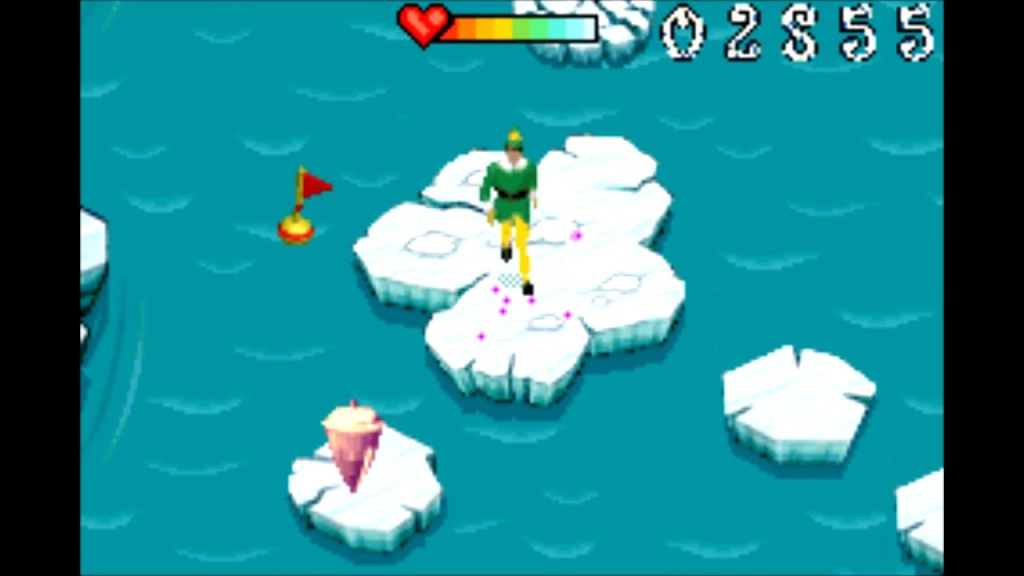 Other stages are designed as either top down platformers or minigames, the worst of these stages is easily jumping across the Icebergs, this stage had really bad issues with landing, in most cases you would hit the water when you had definitely landed on the iceberg but because it wasn’t centred the game took that as a miss, the stage is very long and at some points the platforms you need land on are moving which makes it even worse.